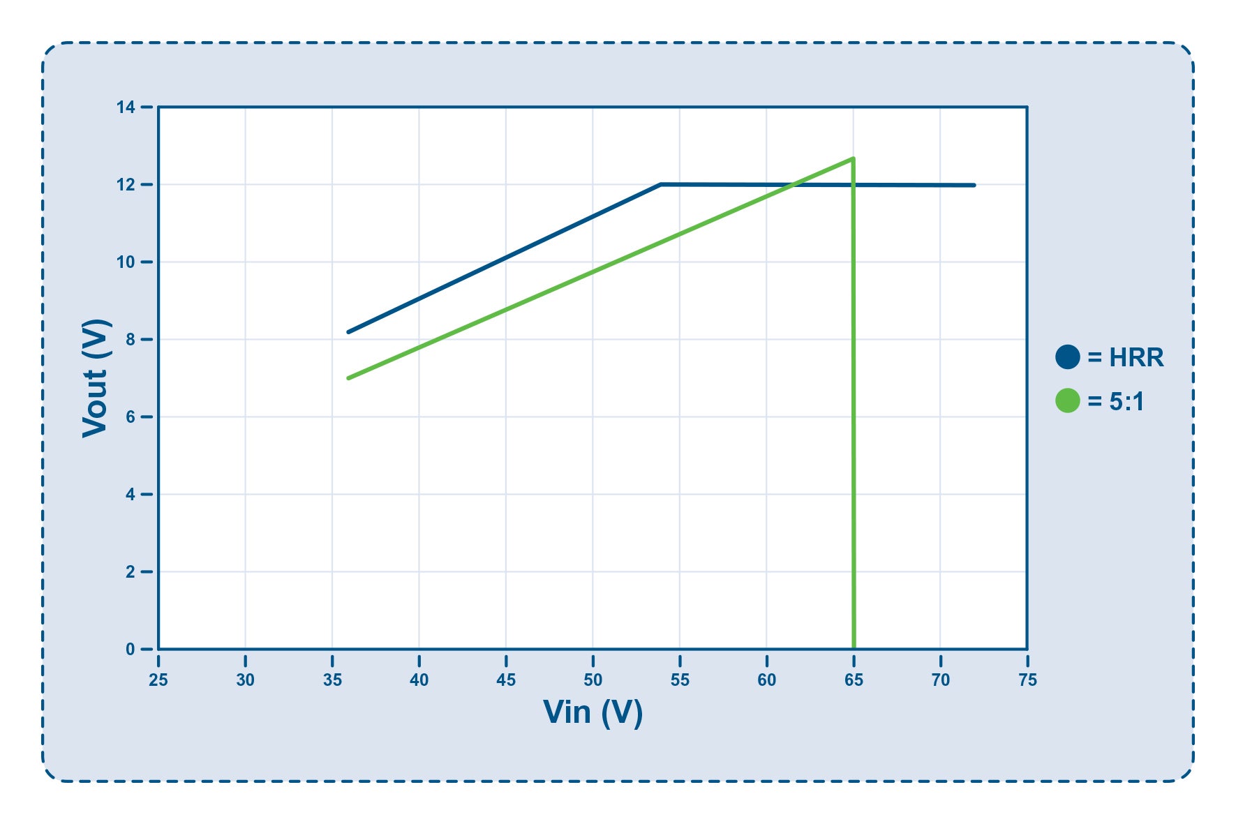 Figure 1: HRR operation is similar to fixed ratio at lower Vin but limits Vout at higher values of Vin