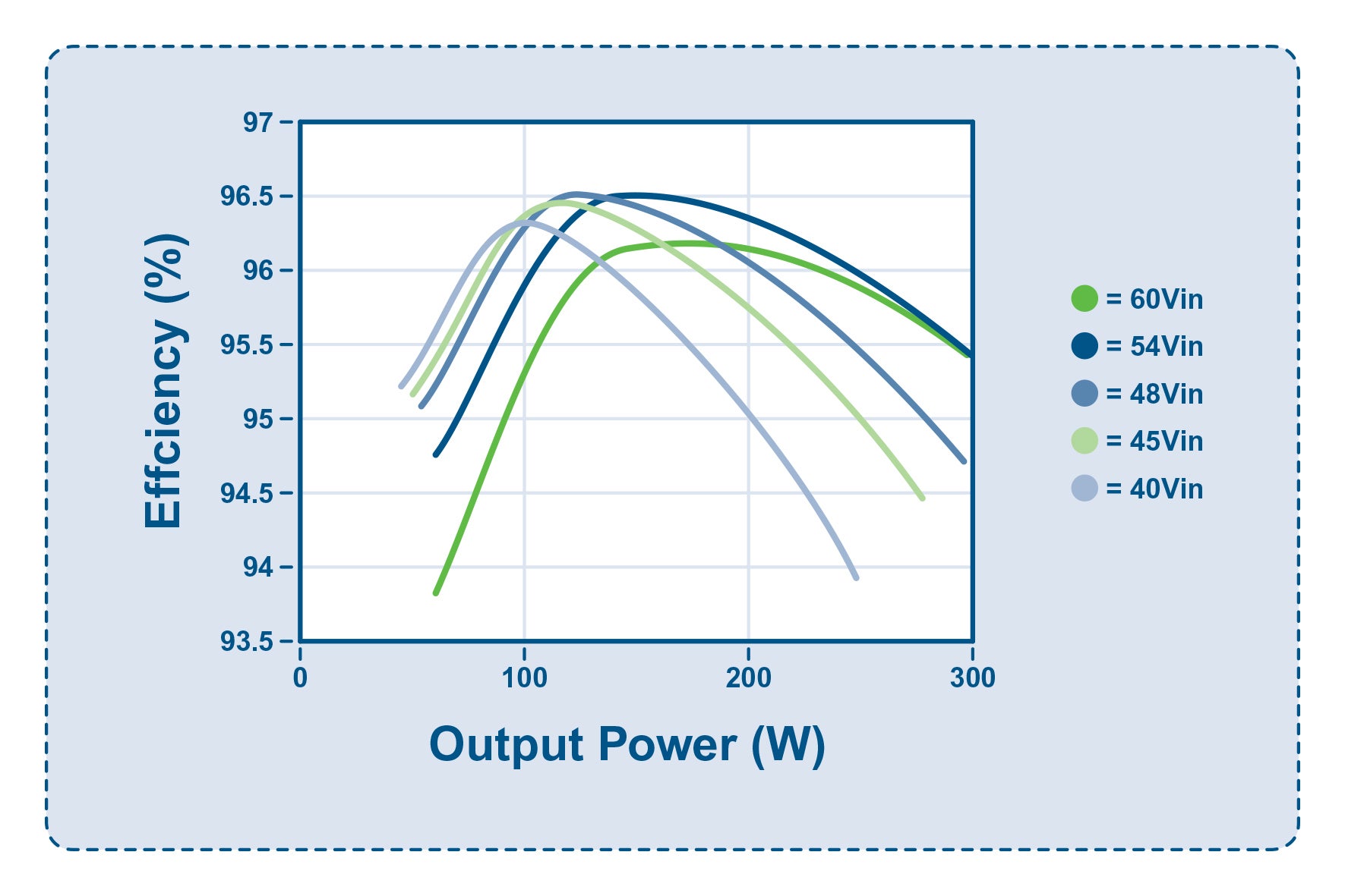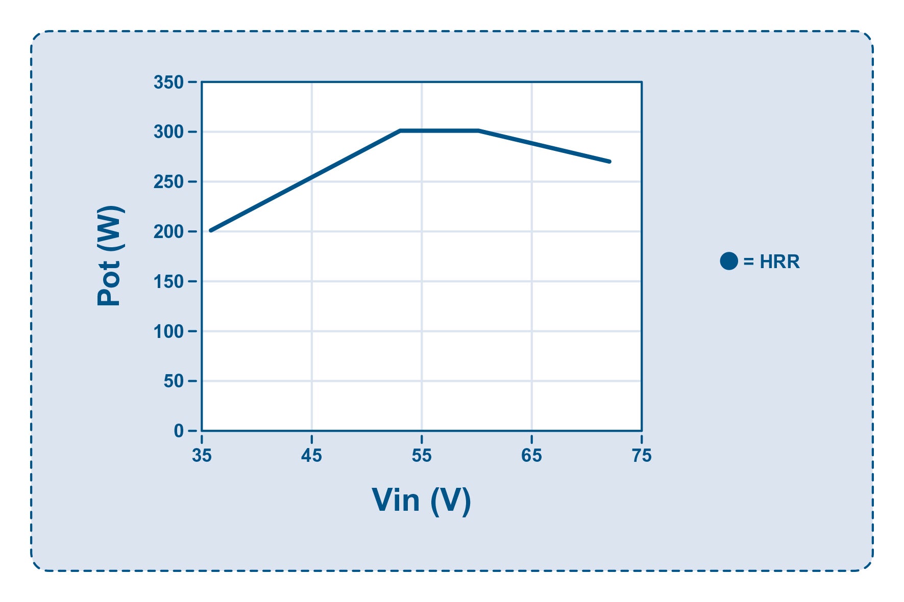 Figure 2: HRR converter maximum output power occurs when Vin is close to the nominal value of 54V