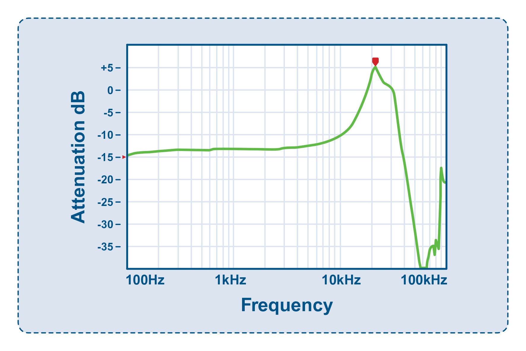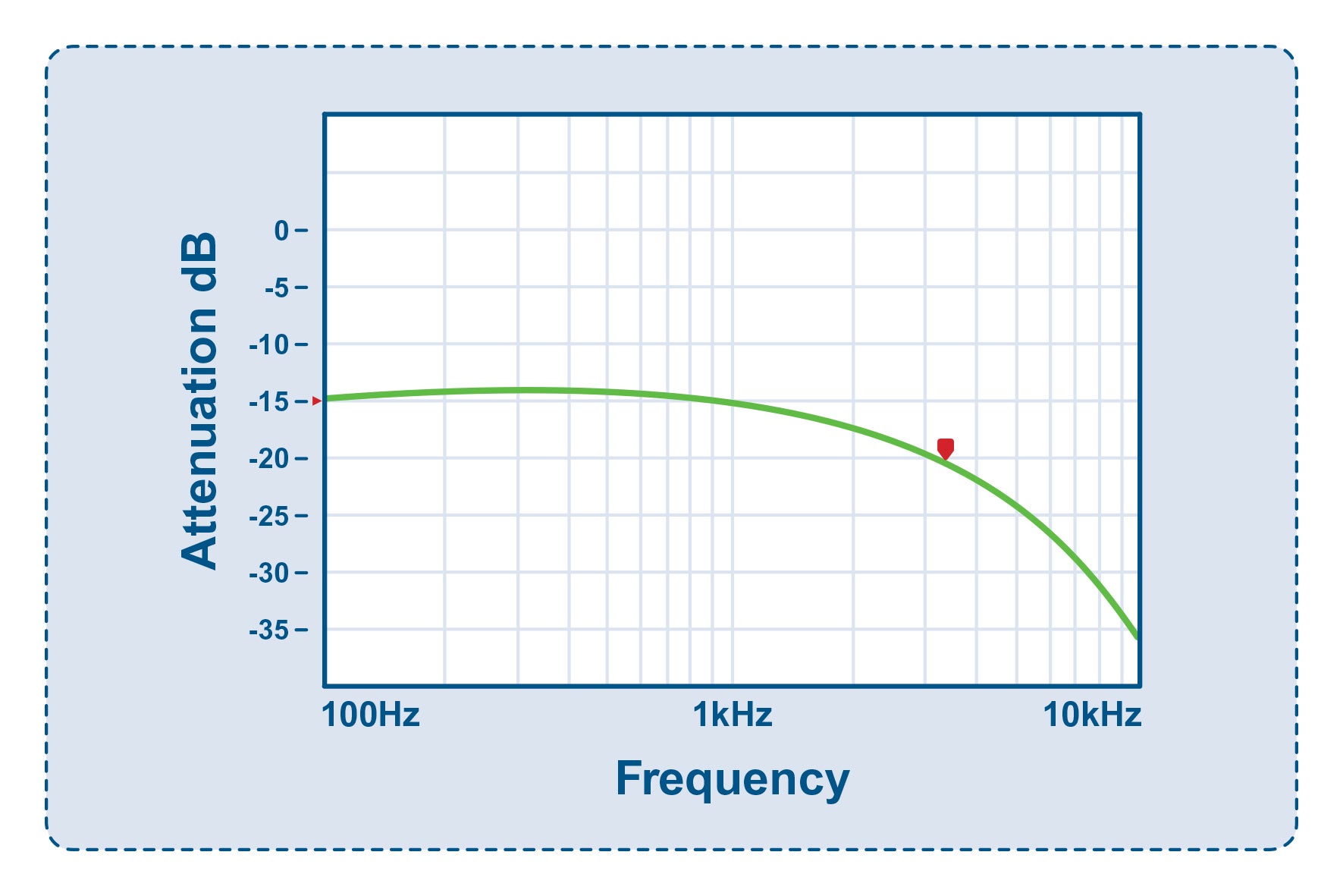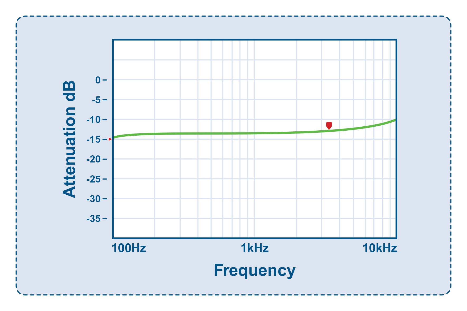 Compare this with the attenuation plot from a fixed-ratio converter in Figure 8 with the 5:1 (-14dB) attenuation up to 1kHz but just -10dB at 10kHz.